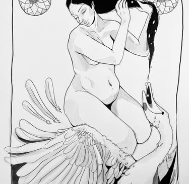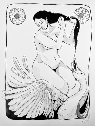 Pearl Eater is inspired by an ancient Indian poetic trope in which a goose/swan/hamsa mistakes the droplets of water falling from a woman’s hair for pearls and swallows them.