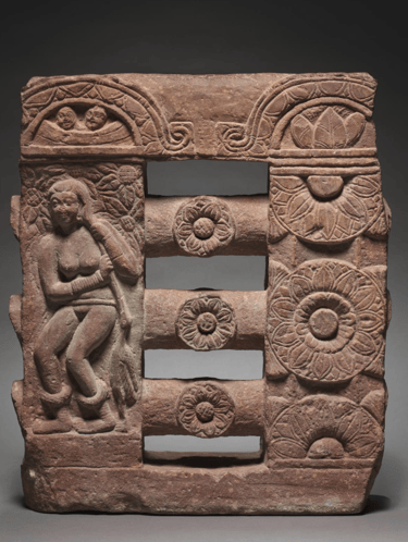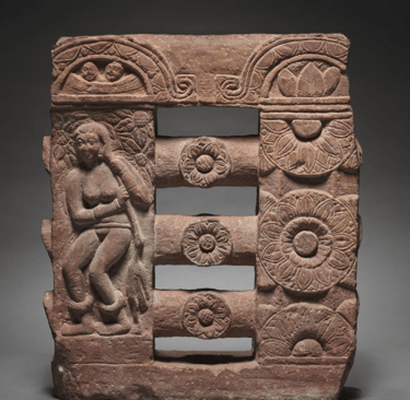 Section of Monolithic Railing with Bather and Lotus Medallions